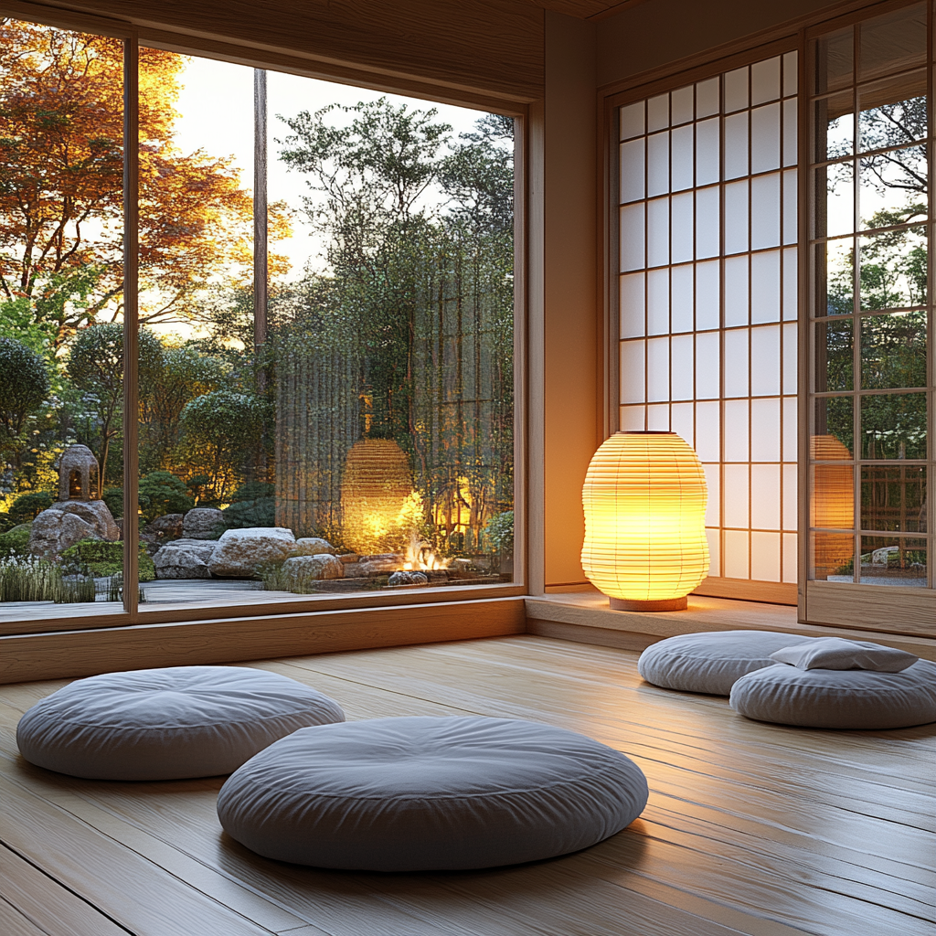 - Use soft, indirect lighting to mimic a ryokan’s relaxing ambiance.