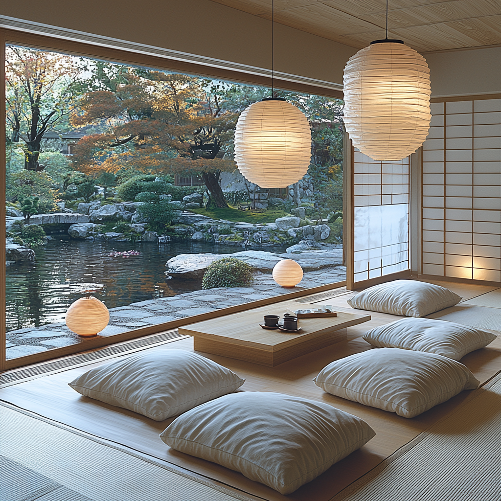 Lighting is one of the most crucial aspects of a ryokan-inspired design. Traditional ryokan interiors avoid harsh, direct lighting and instead focus on soft, diffused light sources that enhance relaxation.